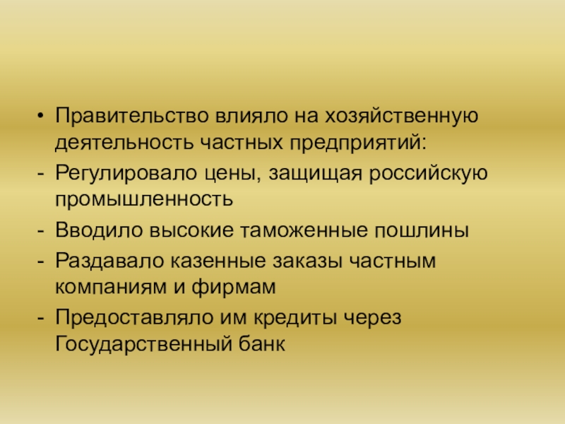 Правительство влияло на хозяйственную деятельность частных предприятий: