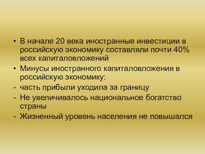 В начале 20 века иностранные инвестиции в российскую экономику составляли почти