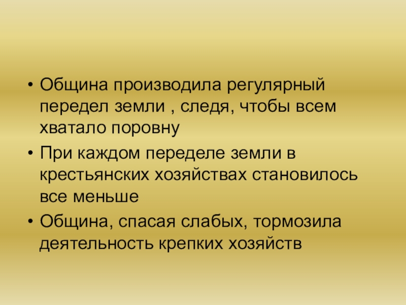 Община производила регулярный передел земли , следя, чтобы всем хватало поровну