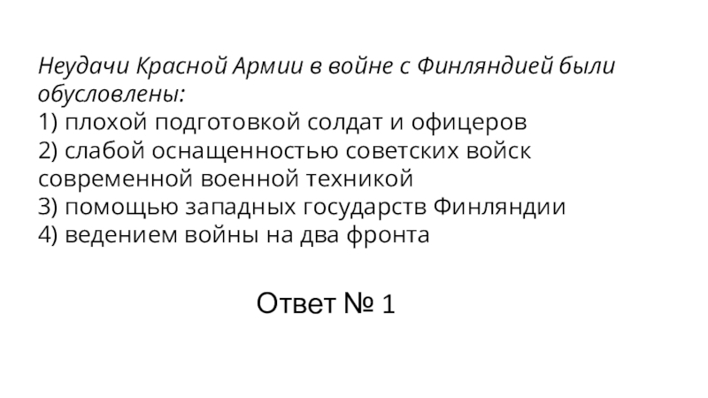 Слайд 7Неудачи Красной Армии в войне с Финляндией были обусловлены: