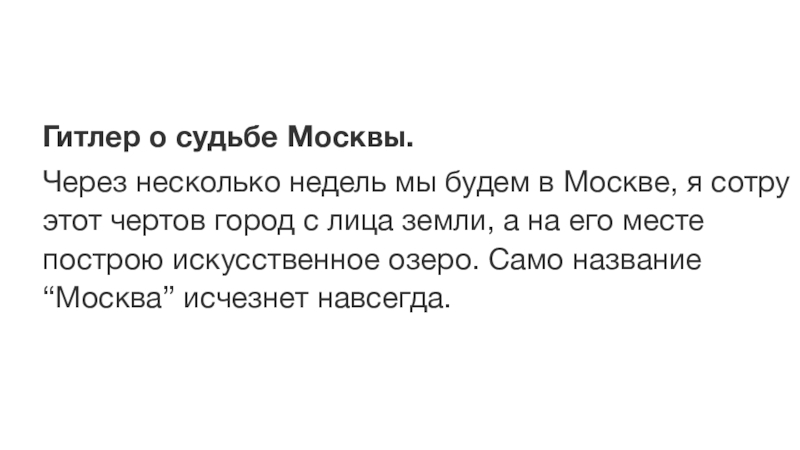 сотру этот чертов город с лица земли, а на его месте построю искусственное озеро. Само название “Москва” исчезнет навсегда.