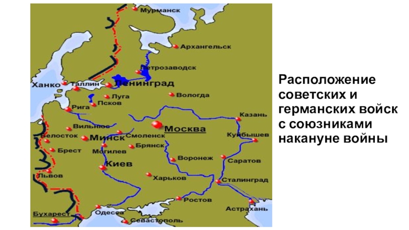 Слайд 21Расположение советских и германских войск с союзниками накануне войны