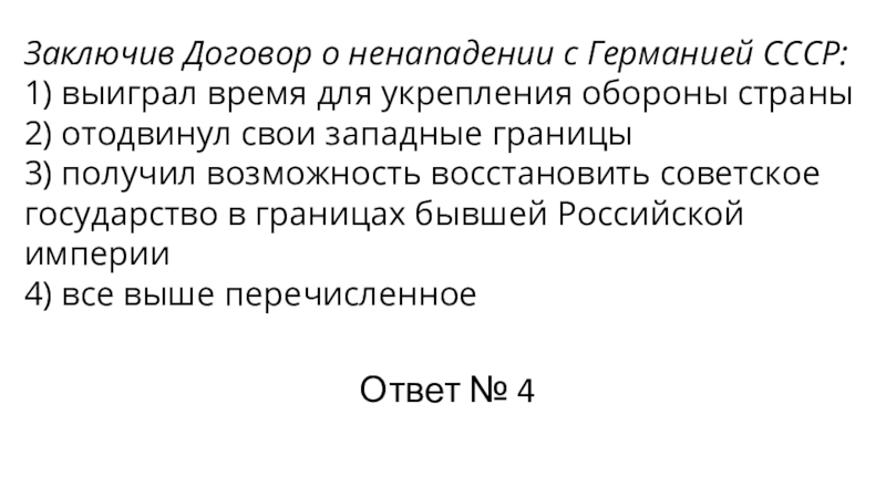 Слайд 6Заключив Договор о ненападении с Германией СССР: