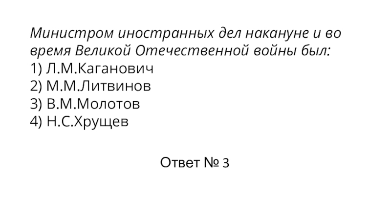 Слайд 5Министром иностранных дел накануне и во время Великой Отечественной войны был: