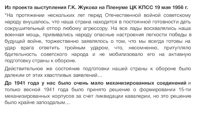 Слайд 13Из проекта выступления Г.К. Жукова на Пленуме ЦК КПСС 19 мая