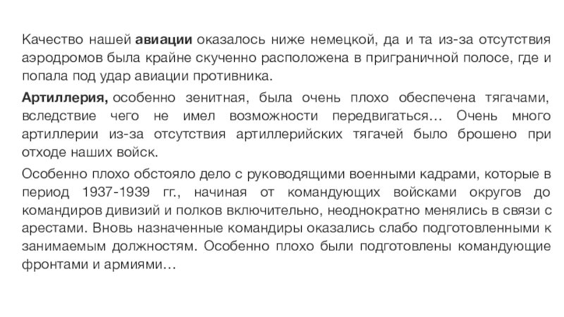 Слайд 14Качество нашей авиации оказалось ниже немецкой, да и та из-за отсутствия аэродромов была