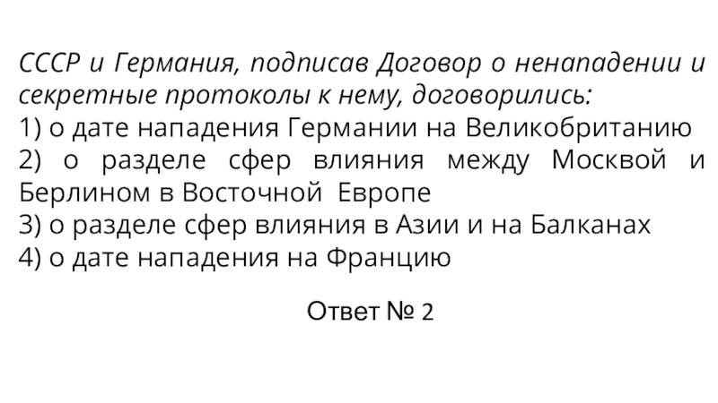 2) о разделе сфер влияния между Москвой и Берлином в Восточной Европе