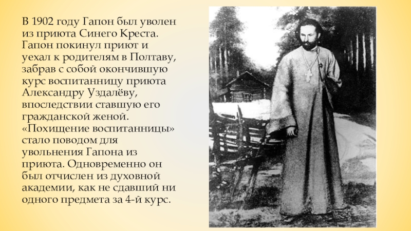 Слайд 5В 1902 году Гапон был уволен из приюта Синего Креста. Гапон