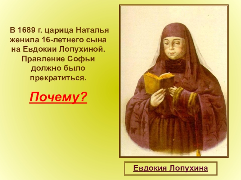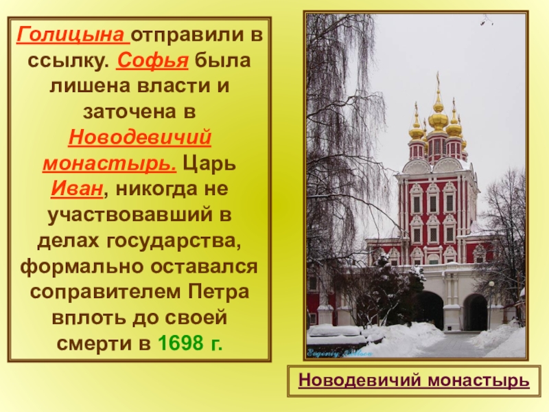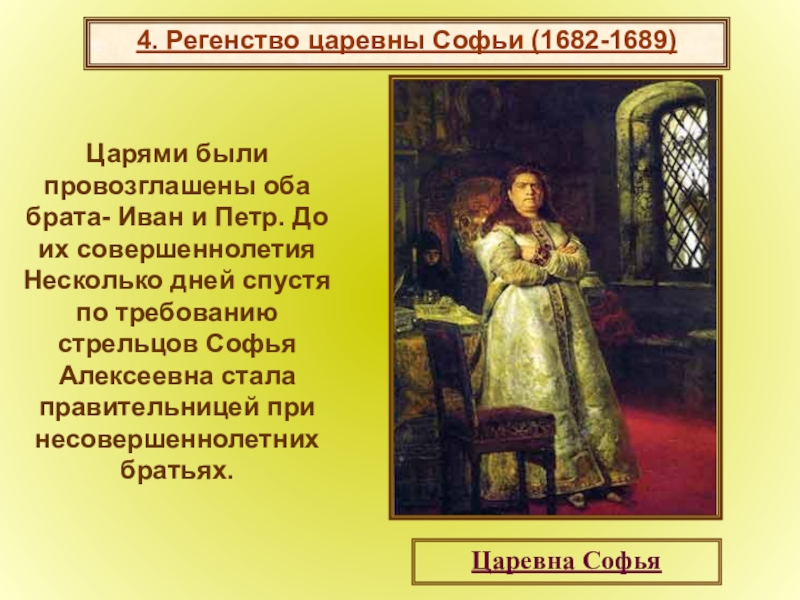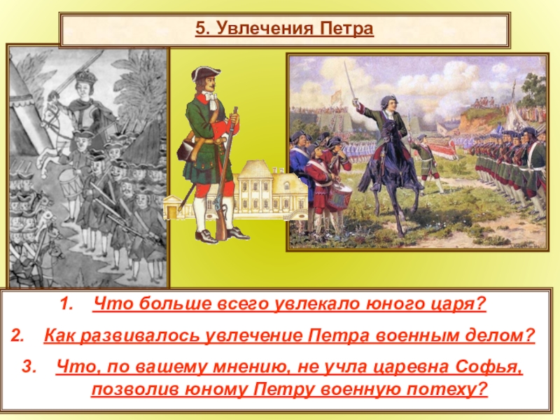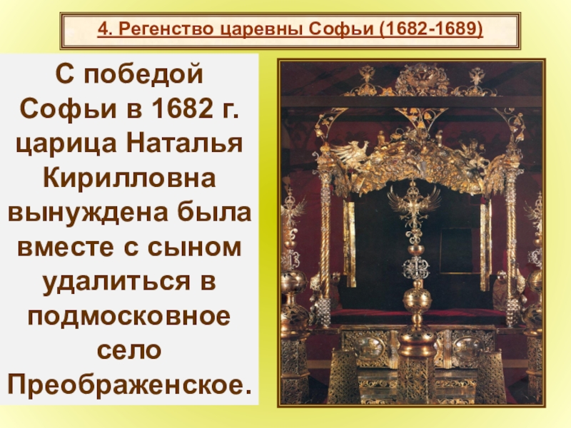 С победой Софьи в 1682 г. царица Наталья Кирилловна вынуждена была вместе с сыном удалиться в подмосковное село Преображенское.