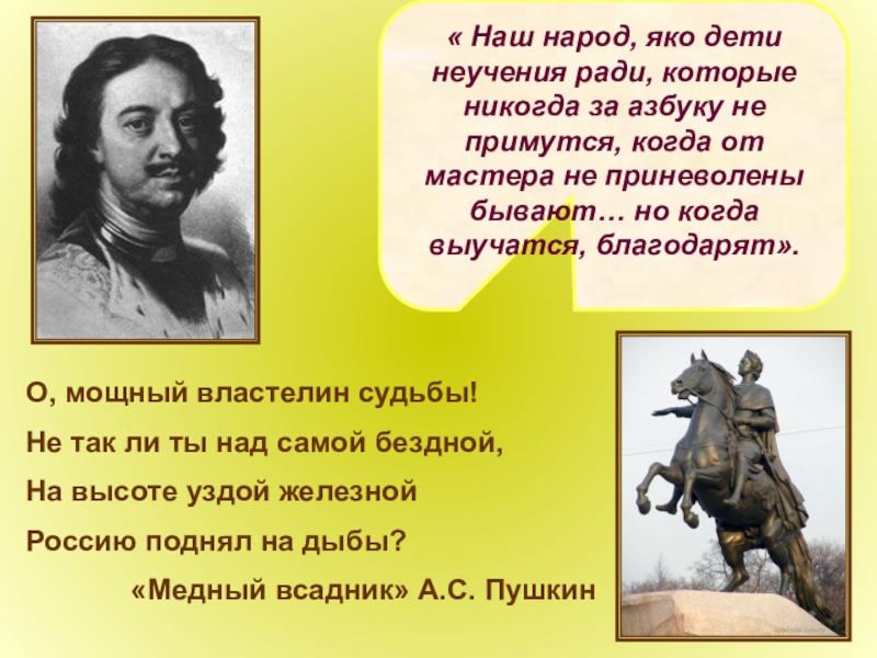 « Наш народ, яко дети неучения ради, которые никогда за азбуку не примутся, когда от мастера не приневолены бывают… но когда выучатся, благодарят».