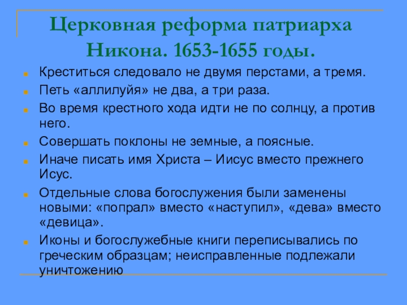 Слайд 17Церковная реформа патриарха Никона. 1653-1655 годы.