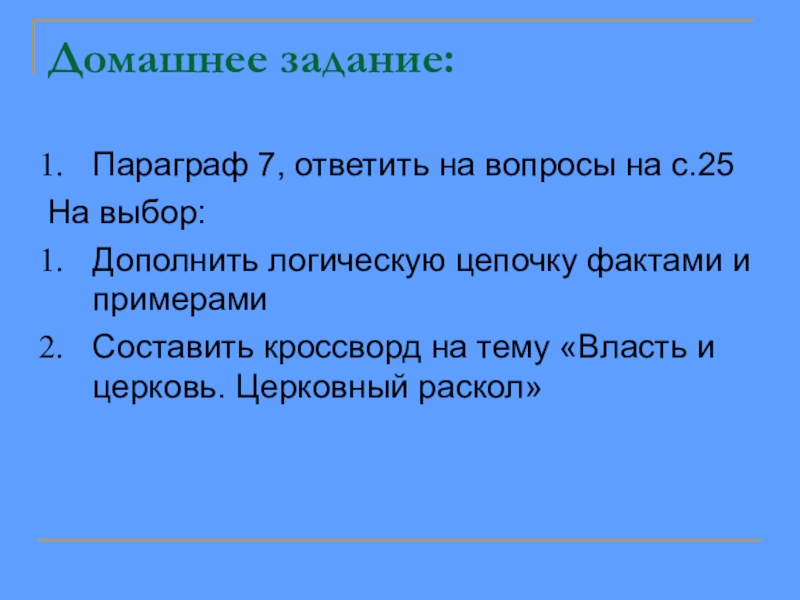 Составить кроссворд на тему «Власть и церковь. Церковный раскол»