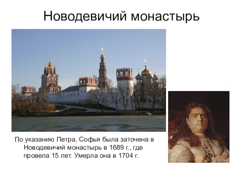 По указанию Петра, Софья была заточена в Новодевичий монастырь в