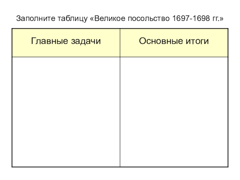 Заполните таблицу «Великое посольство 1697-1698 гг.»