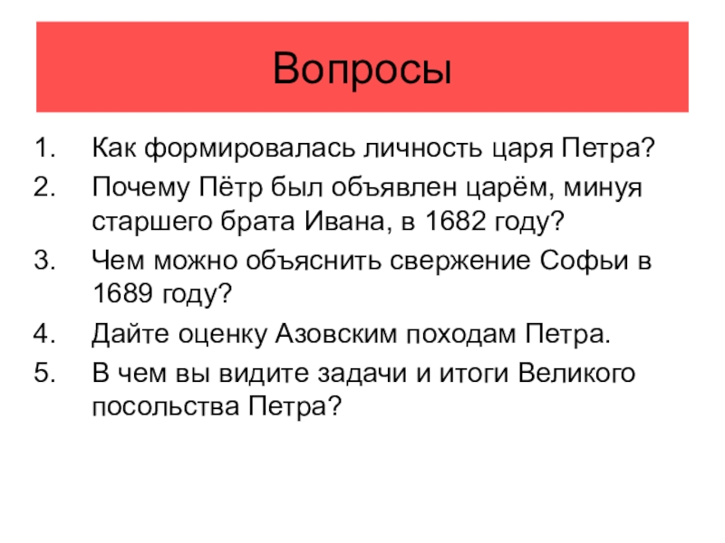 В чем вы видите задачи и итоги Великого посольства Петра?