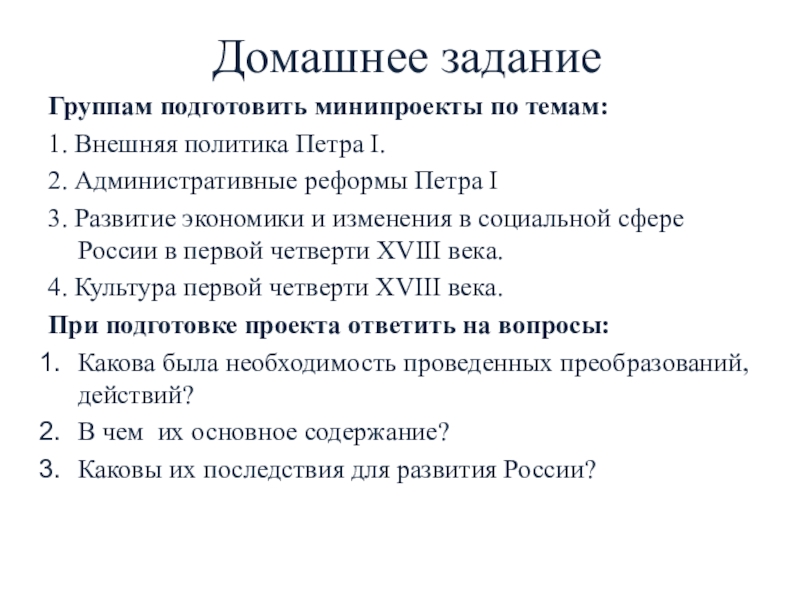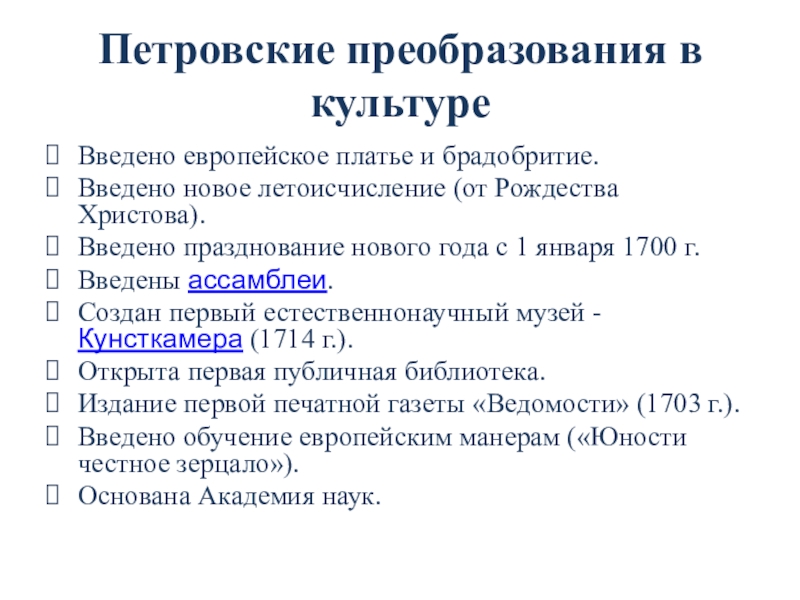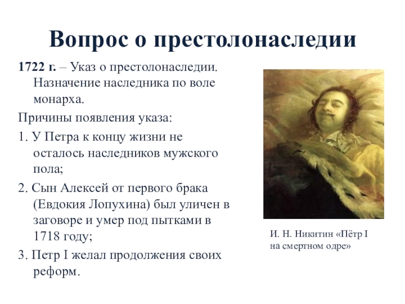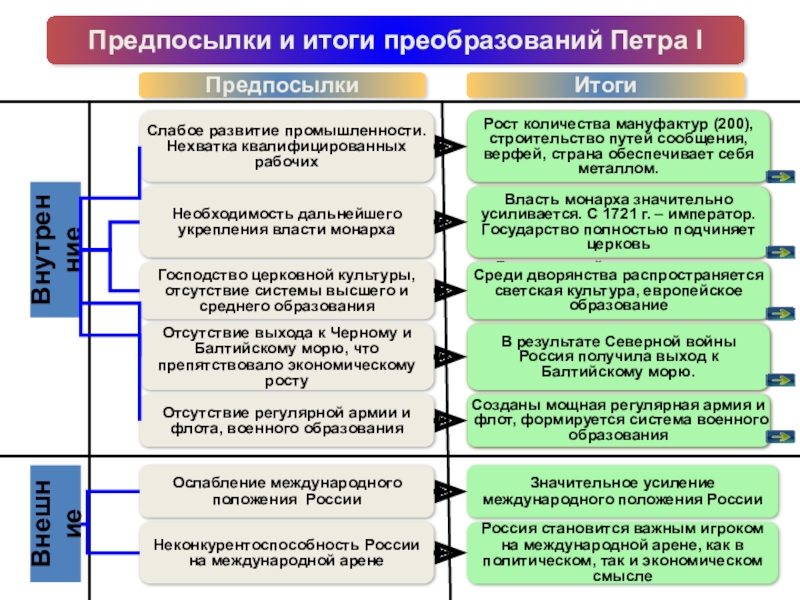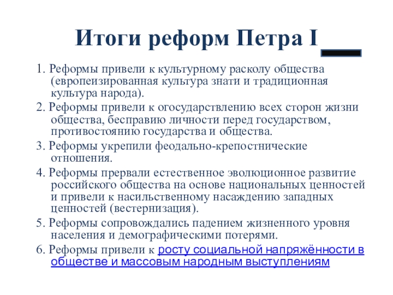 Власть монарха значительно усиливается. С 1721 г. – император. Государство полностью подчиняет церковь
