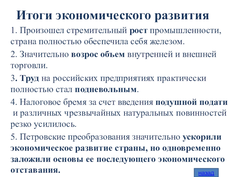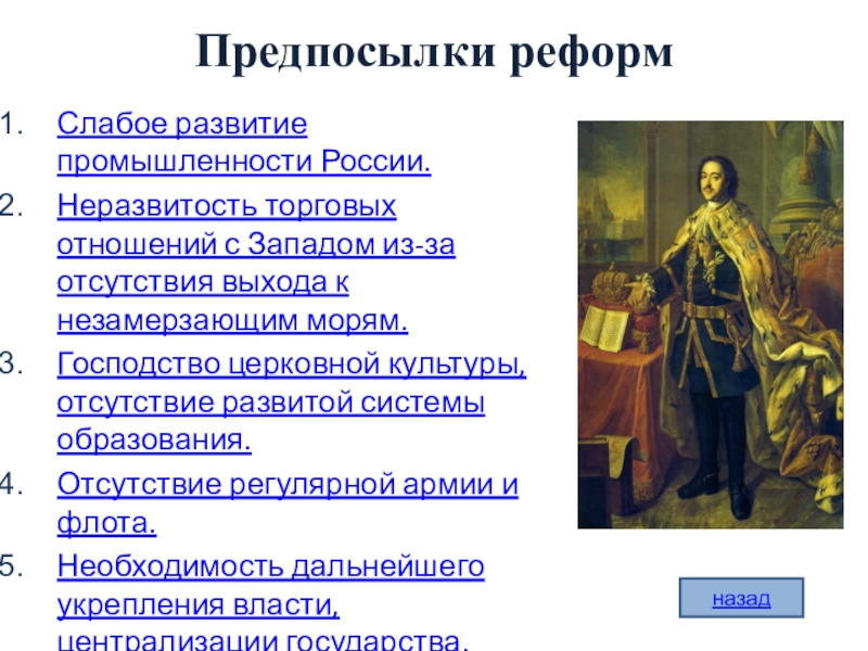 Отсутствие выхода к Черному и Балтийскому морю, что препятствовало экономическому росту