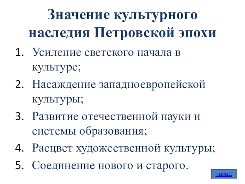 Господство церковной культуры, отсутствие системы высшего и среднего образования
