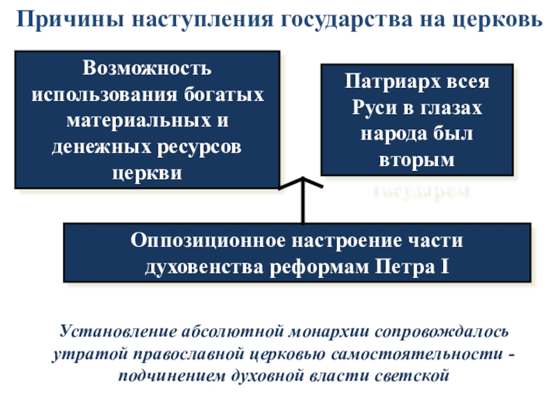 Установление абсолютной монархии сопровождалось утратой православной церковью самостоятельности - подчинением духовной власти светской