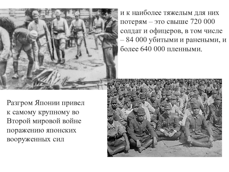 и к наиболее тяжелым для них потерям – это свыше 720 000 солдат и офицеров, в том числе – 84 000 убитыми и ранеными, и более 640 000 пленными.