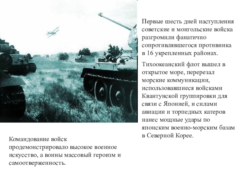 Командование войск продемонстрировало высокое военное искусство, а воины массовый героизм и самоотверженность.