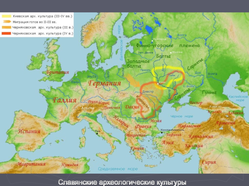 Слайд 3Славянские археологические культуры