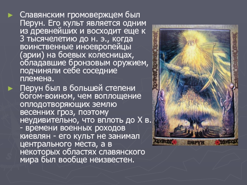 Слайд 6Славянским громовержцем был Перун. Его культ является одним из древнейших и
