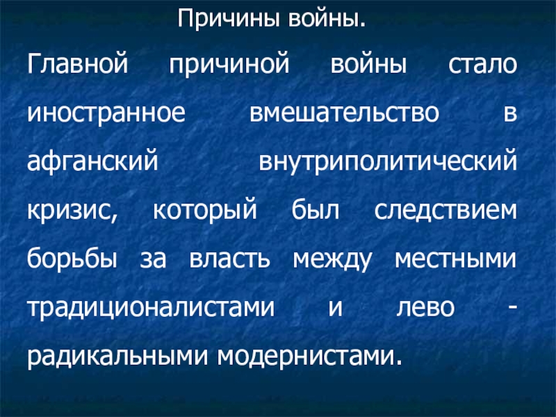 Главной причиной войны стало иностранное вмешательство в афганский внутриполитический кризис,