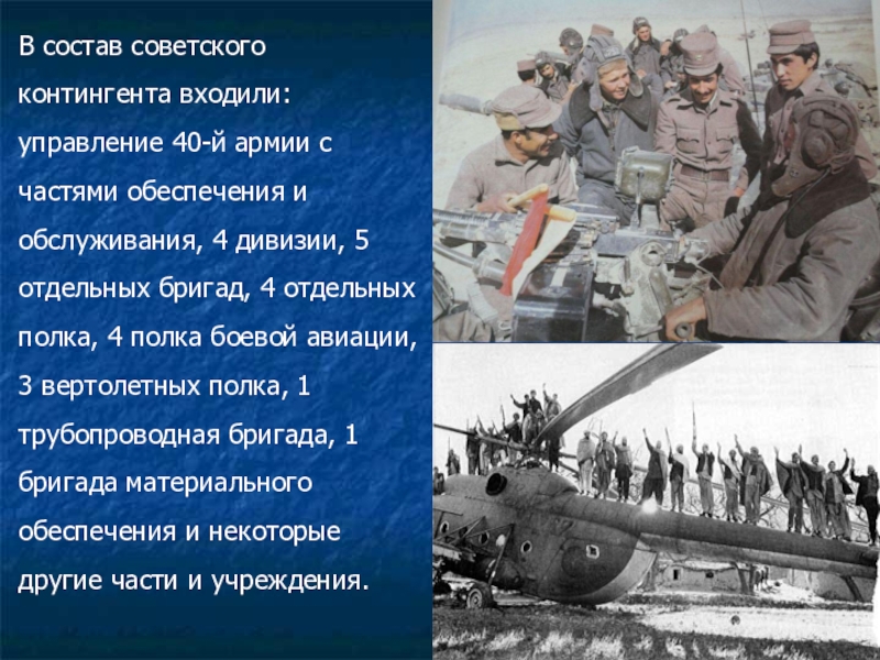 Слайд 11В состав советского контингента входили: управление 40-й армии с частями обеспечения