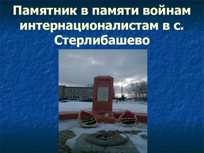 Слайд 21Памятник в памяти войнам интернационалистам в с.Стерлибашево