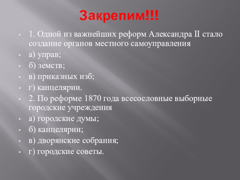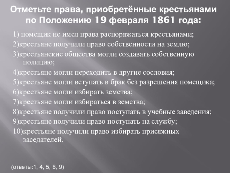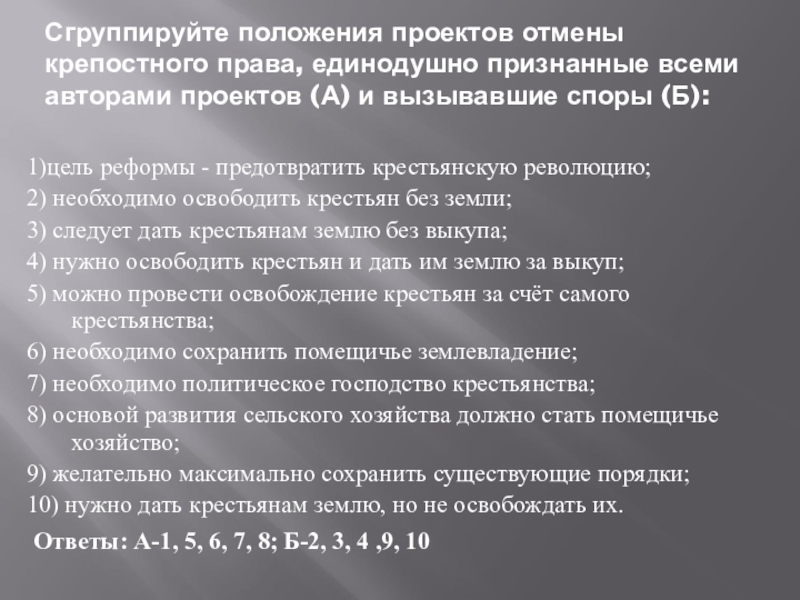 4) нужно освободить крестьян и дать им землю за выкуп;