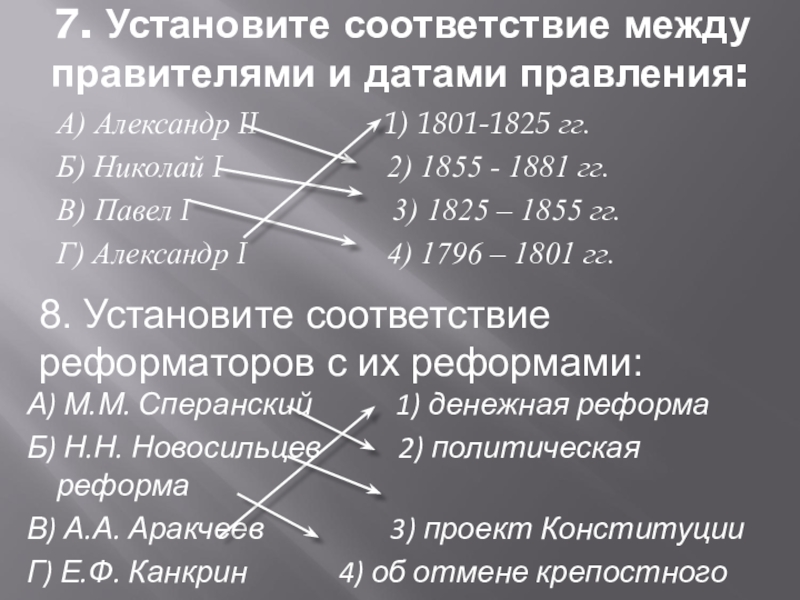 Г) Е.Ф. Канкрин 4) об отмене крепостного права