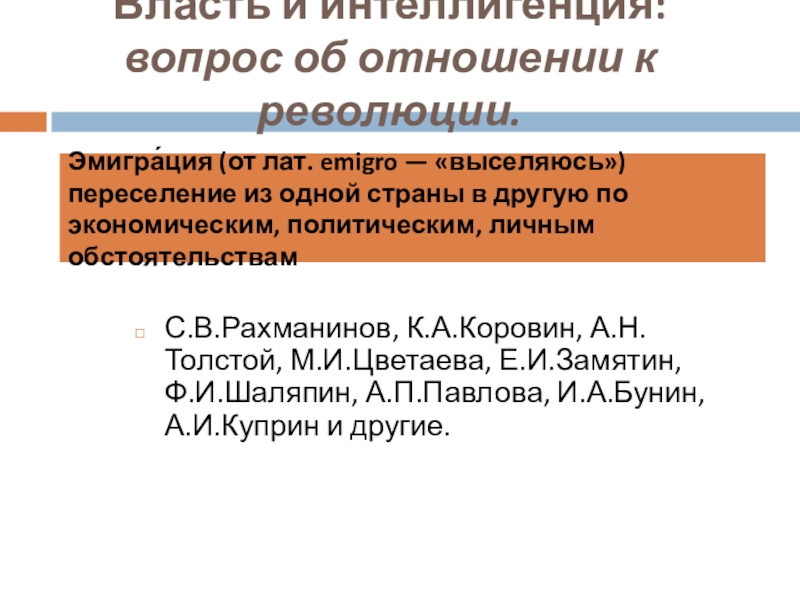 Эмигра́ция (от лат. emigro — «выселяюсь») переселение из одной страны в другую по экономическим, политическим, личным обстоятельствам