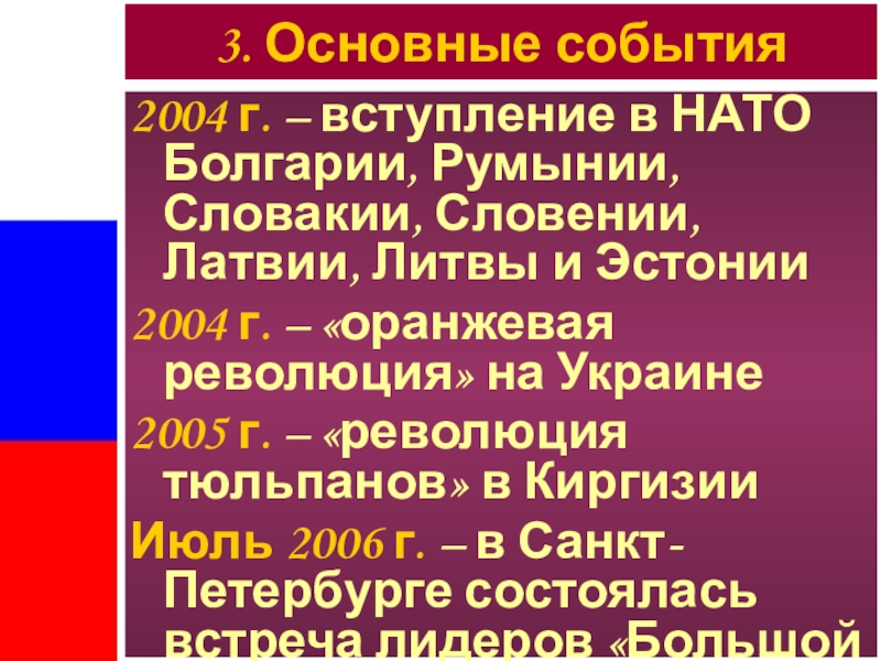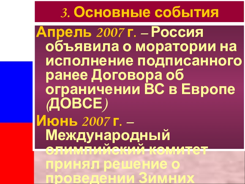 3. Основные события