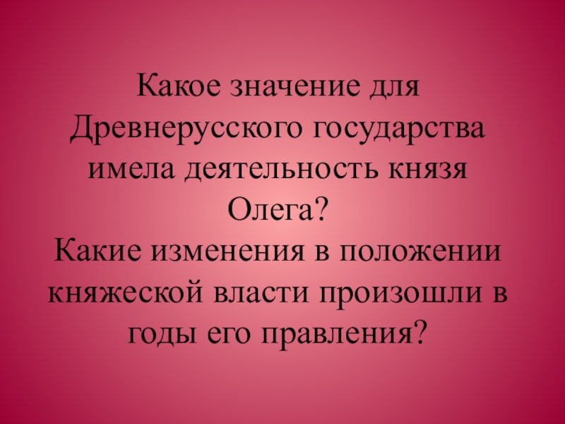 Слайд 8Какое значение для Древнерусского государства имела деятельность князя Олега?