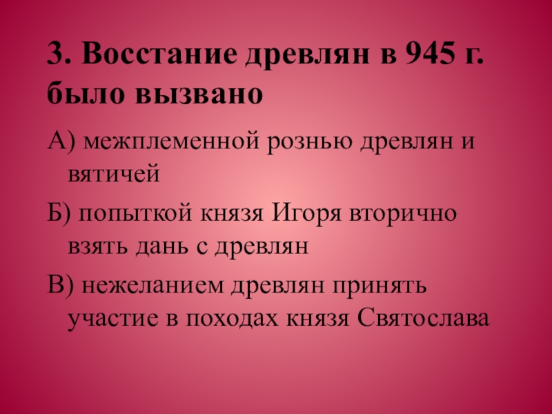 Слайд 213. Восстание древлян в 945 г. было вызвано