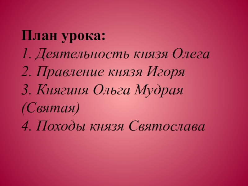 Цель : рассмотреть процесс становления Древнерусского государства, охарактеризовать систему управления, а