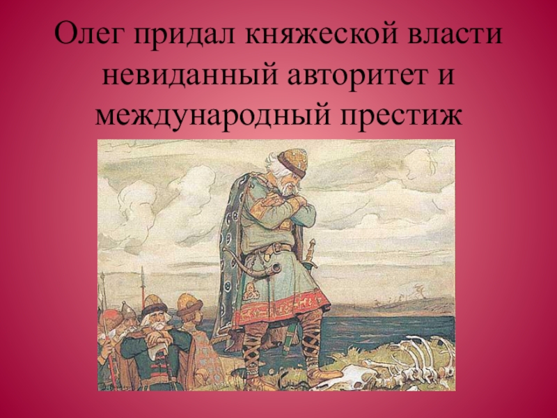 Слайд 7Олег придал княжеской власти невиданный авторитет и международный престиж