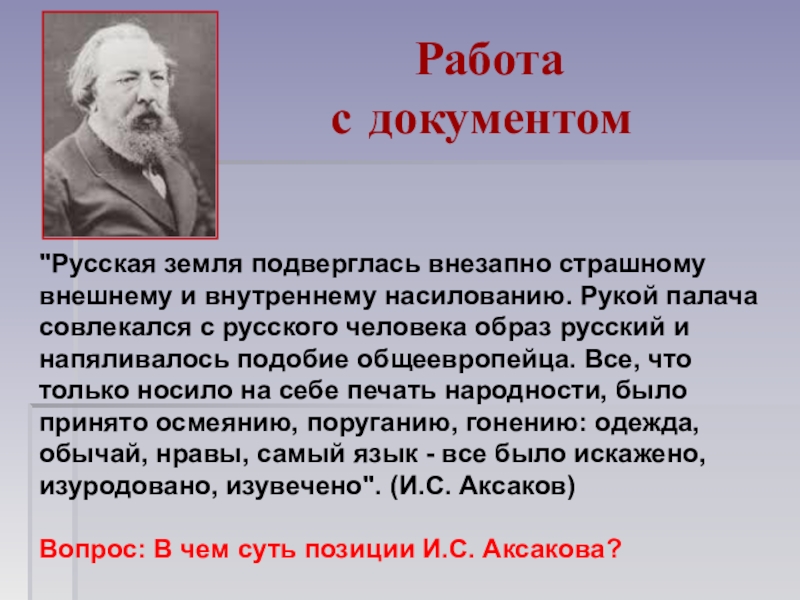 Вопрос: В чем суть позиции И.С. Аксакова?