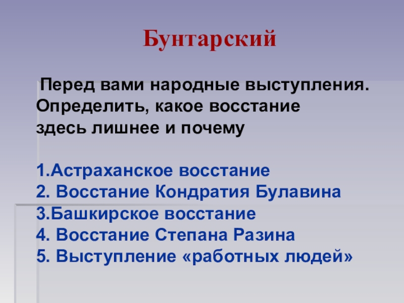 Слайд 12 Бунтарский