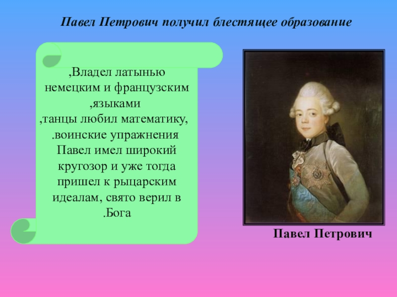 Павел Петрович получил блестящее образование