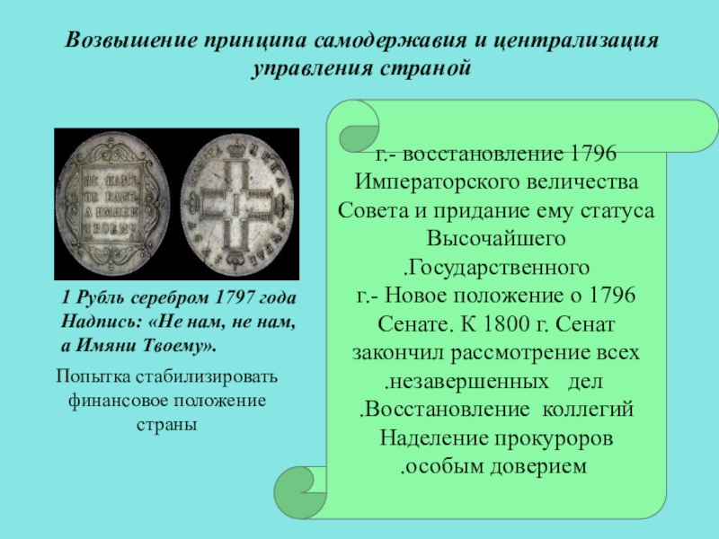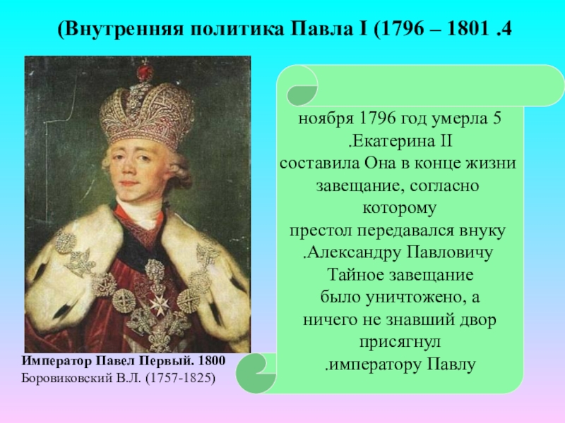 4. Внутренняя политика Павла I (1796 – 1801)