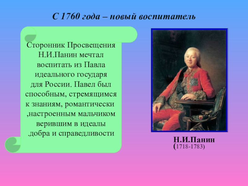 С 1760 года – новый воспитатель