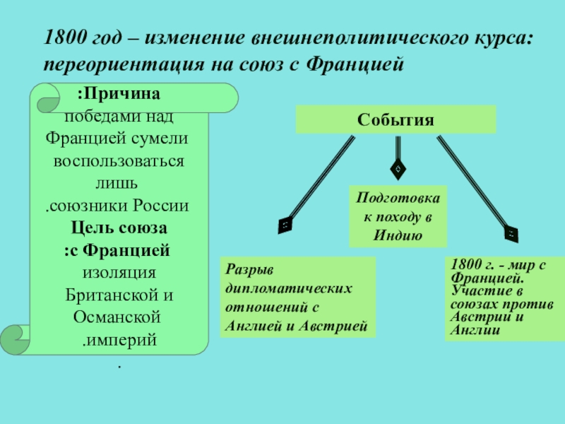 1800 год – изменение внешнеполитического курса: переориентация на союз с Францией