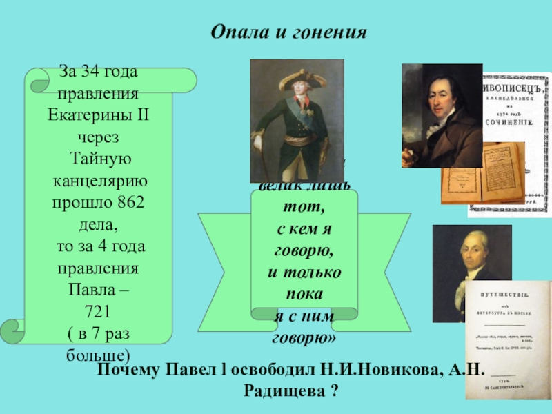 Почему Павел l освободил Н.И.Новикова, А.Н.Радищева ?