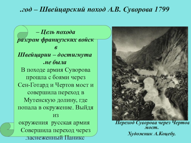 1799 год – Швейцарский поход А.В. Суворова.