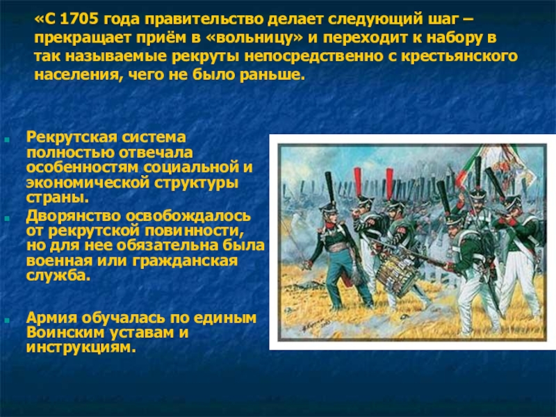 Рекрутская система полностью отвечала особенностям социальной и экономической структуры страны.