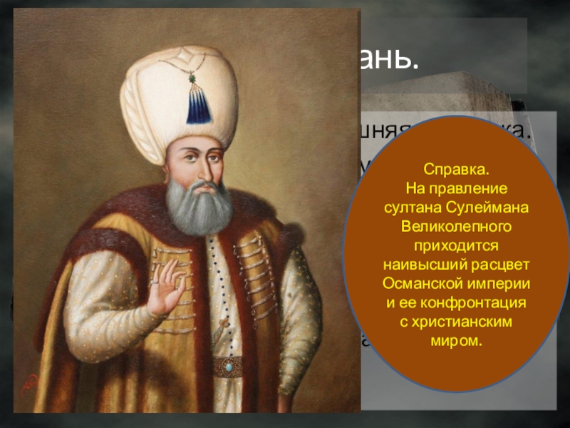 На правление султана Сулеймана Великолепного приходится наивысший расцвет Османской империи и ее конфронтация с христианским миром.