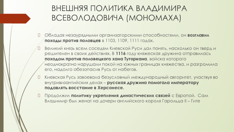 ВСЕВОЛОД (1030 – 13 апреля 1093 гг.). СЫН ВЛАДИМИР(МОНОМАХ). (ДЕТИ ВЛАДИМИРА: ИЗЯСЛАВ, РОСТИСЛАВ, МСТИСЛАВ)
