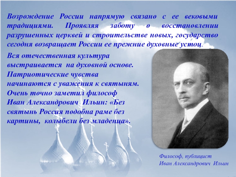Иван Александрович Ильин: «Без святынь Россия подобна раме без картины, колыбели без младенца».